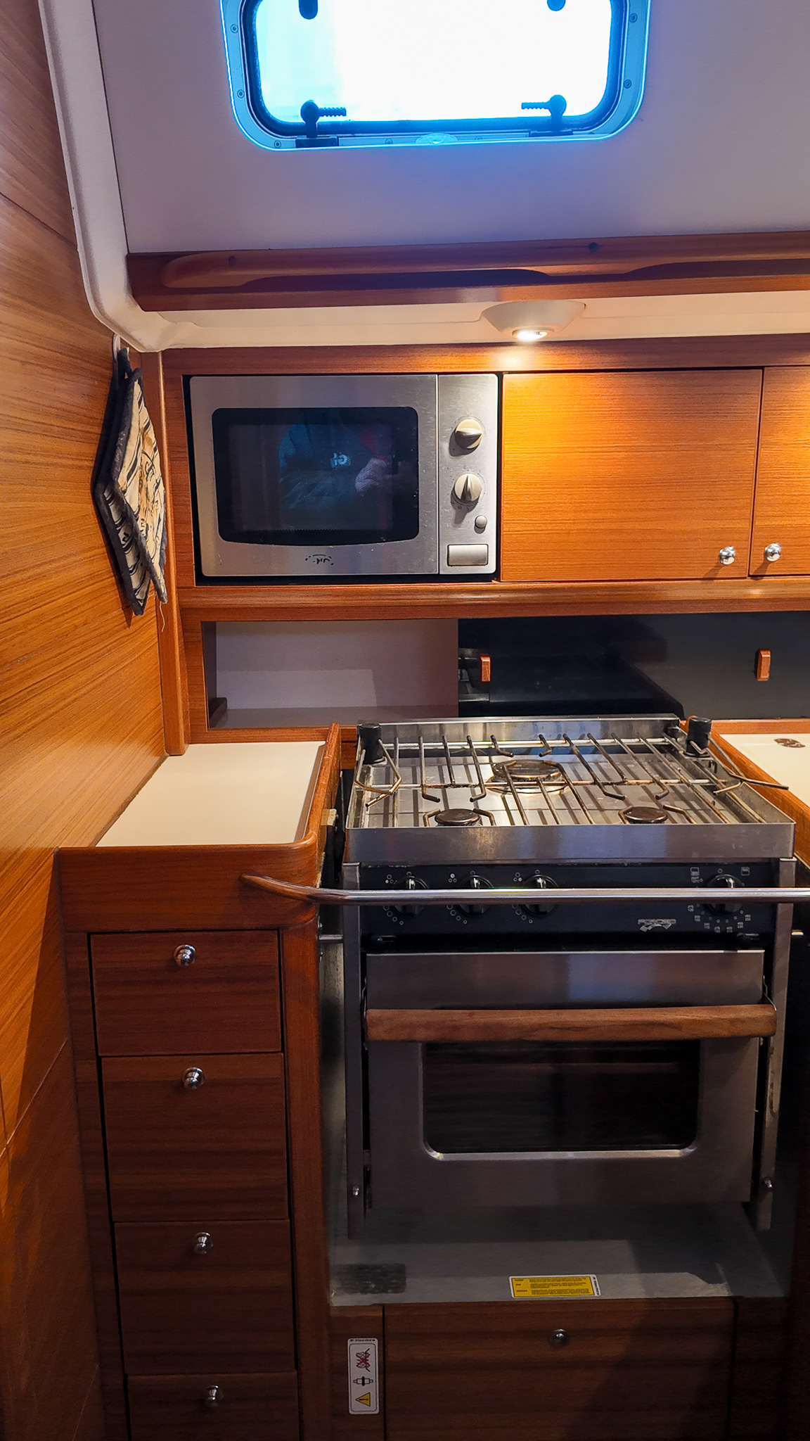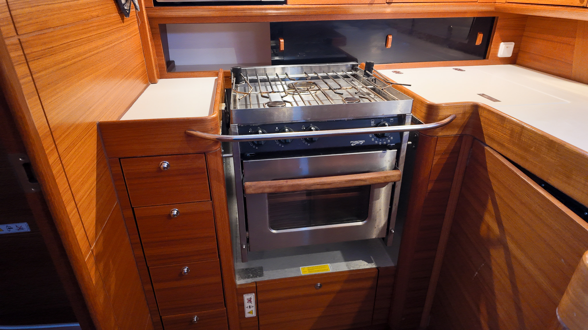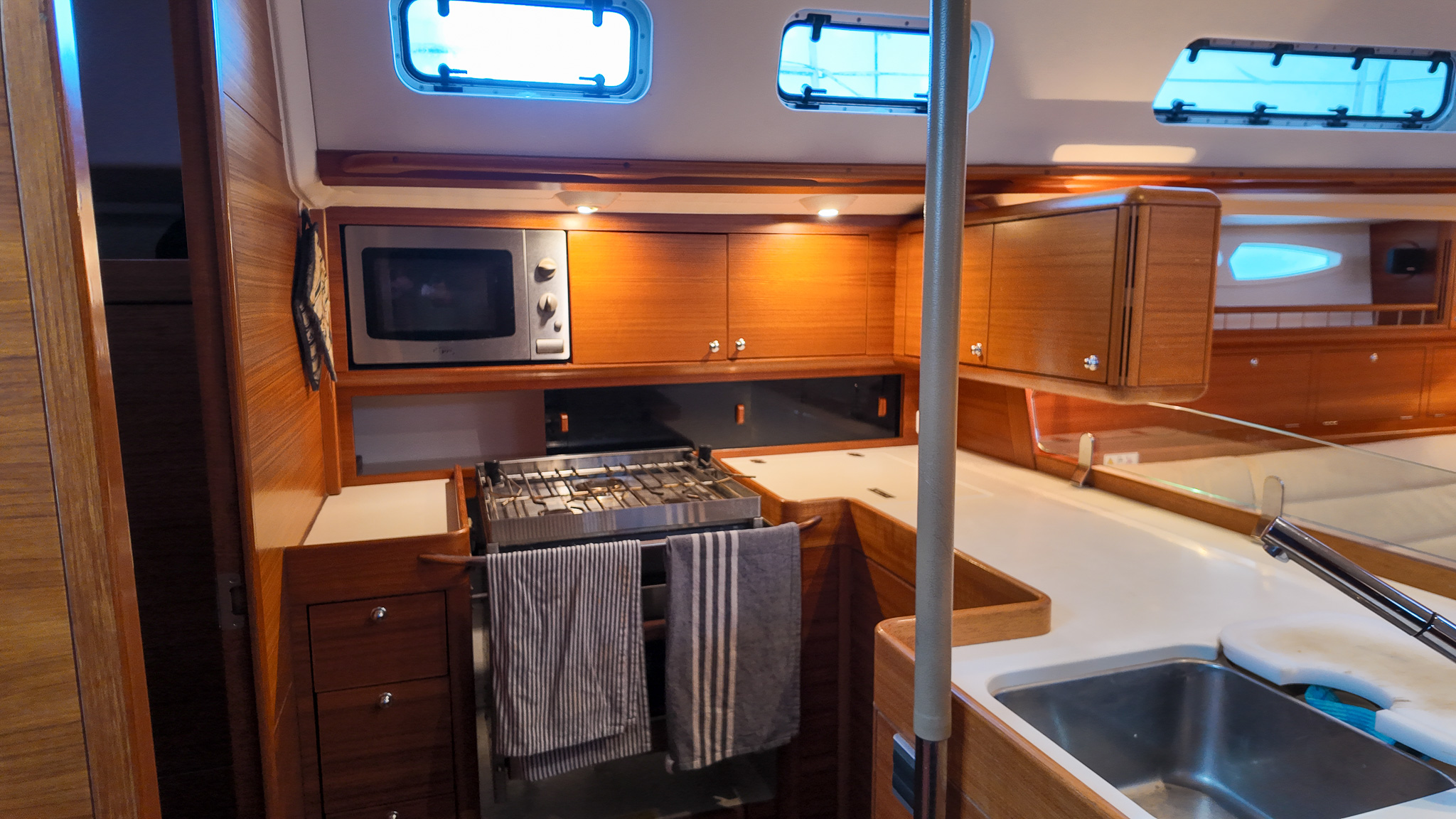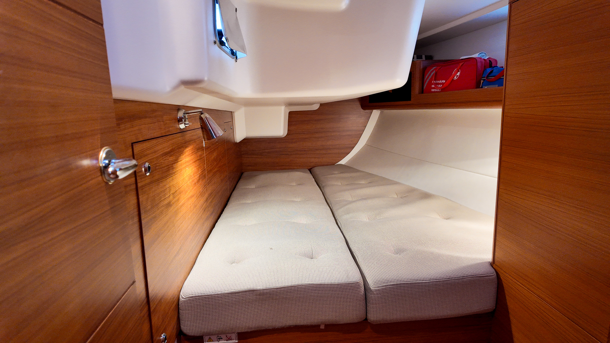 Interiören i Xc 45 är en studie i skandinavisk design där högkvalitativ teak möter moderna och ljusa ytor. Salongen är rymlig och inbjudande med en layout som är optimerad för både socialt umgänge och praktisk funktion under gång. Det välutrustade u-pentryt ger kocken optimalt stöd vid sjögång, medan det stora navigationsbordet påminner om båtens sanna syfte som en seriös långseglare. Varje kabin är utformad med fokus på maximal förvaring och högsta boendekomfort, vilket gör livet ombord behagligt även under längre vistelser i hamn eller till havs.