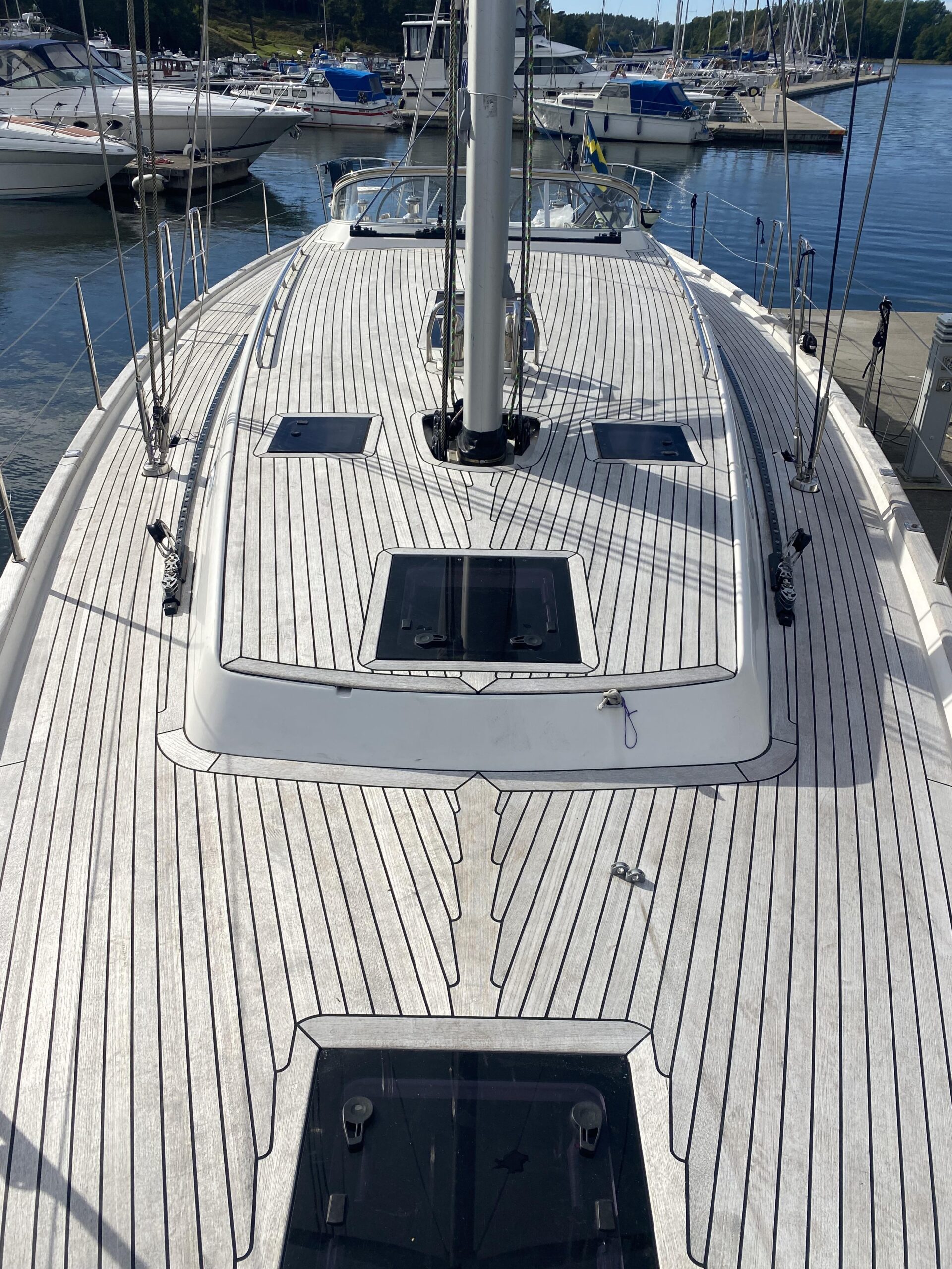 Kvalitetsnivån i en Xc 45 genomsyrar varje detalj, från den strukturella uppbyggnaden till den yttre finishen. Båten är byggd kring X-Yachts berömda stålram som effektivt fördelar krafterna från köl och rigg, vilket ger en extremt vridstyv och säker konstruktion. Materialvalen är genomgående av högsta klass och skrovets sandwichkonstruktion ger både överlägsen styrka och god isolering mot både värme och kyla. Det är denna kompromisslösa inställning till byggkvalitet som gör att en Xc 45 inte bara behåller sitt värde över tid, utan också ingjuter ett totalt förtroende hos sin ägare oavsett vilka farvatten man väljer att utforska.